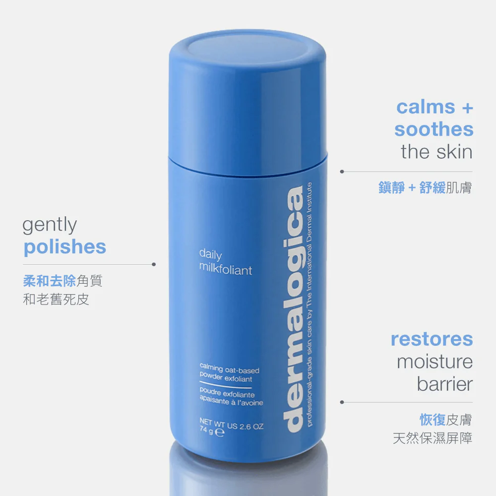 純素配方蘊含燕麥粉末、椰子和草本萃取,只需加入少量清水,就能將粉末轉化成豐富的乳狀泡沫,柔和地去除暗沉角質和老舊死皮,鎮靜及舒緩肌膚,令膚色更均勻亮澤,膚質更平滑細緻。當中加入含有 AHA (果酸) 及 BHA (水楊酸) 的葡萄萃取及精氨酸 (Arginine),配合椰奶粉末、礦物質和透明質酸,有滋養及舒緩作用,亦使肌膚柔嫩光滑。