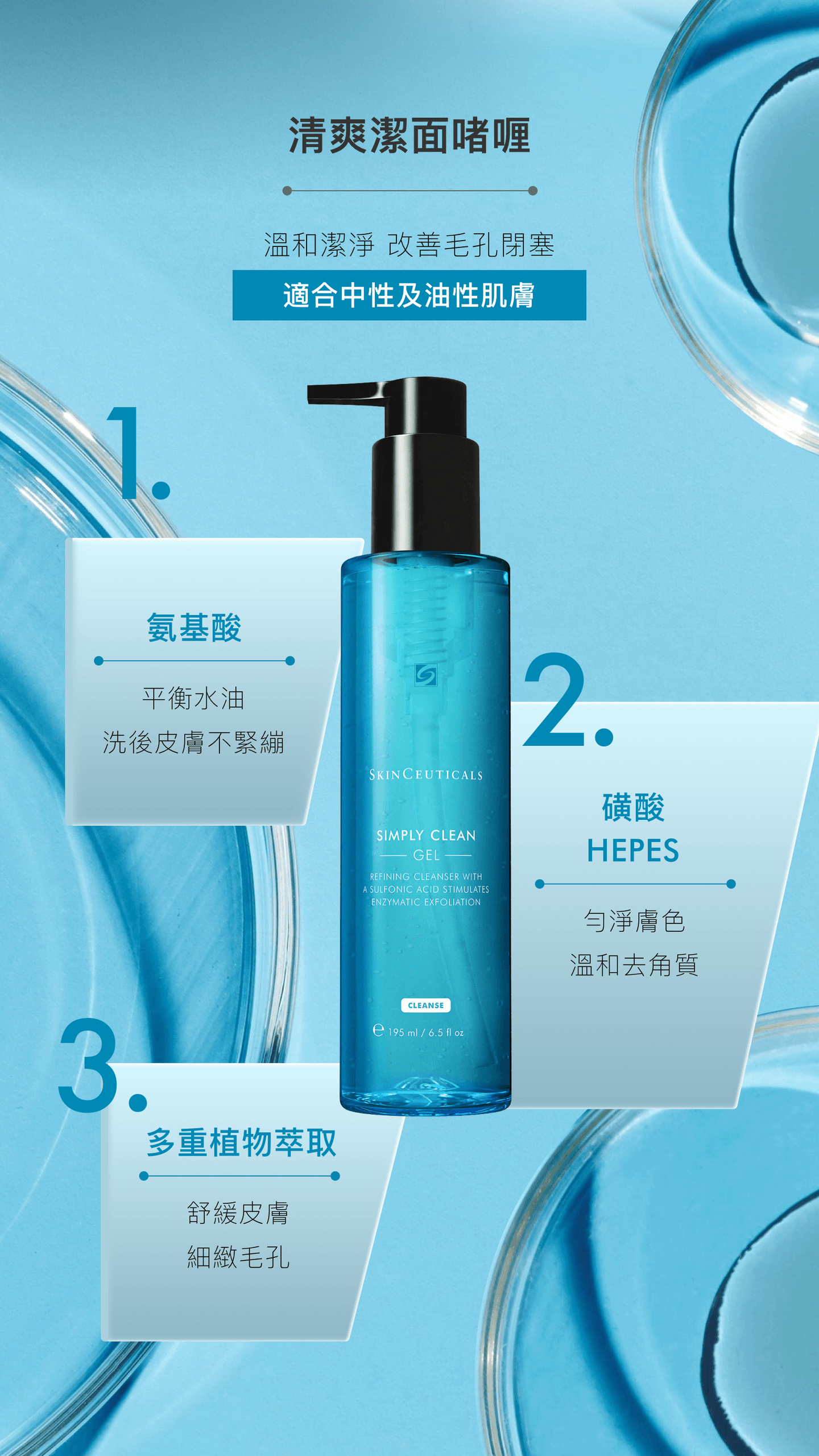 每天早晚使用2次 ,用1泵份量塗抹於濕的臉部和頸部,打圈清潔妝容後,用溫水或棉花徹底沖洗。早上可配合SkinCeuticals 抗氧化精華及防曬霜一起使用;晚上可配合SkinCeuticals補濕或改善產品一起使用。
