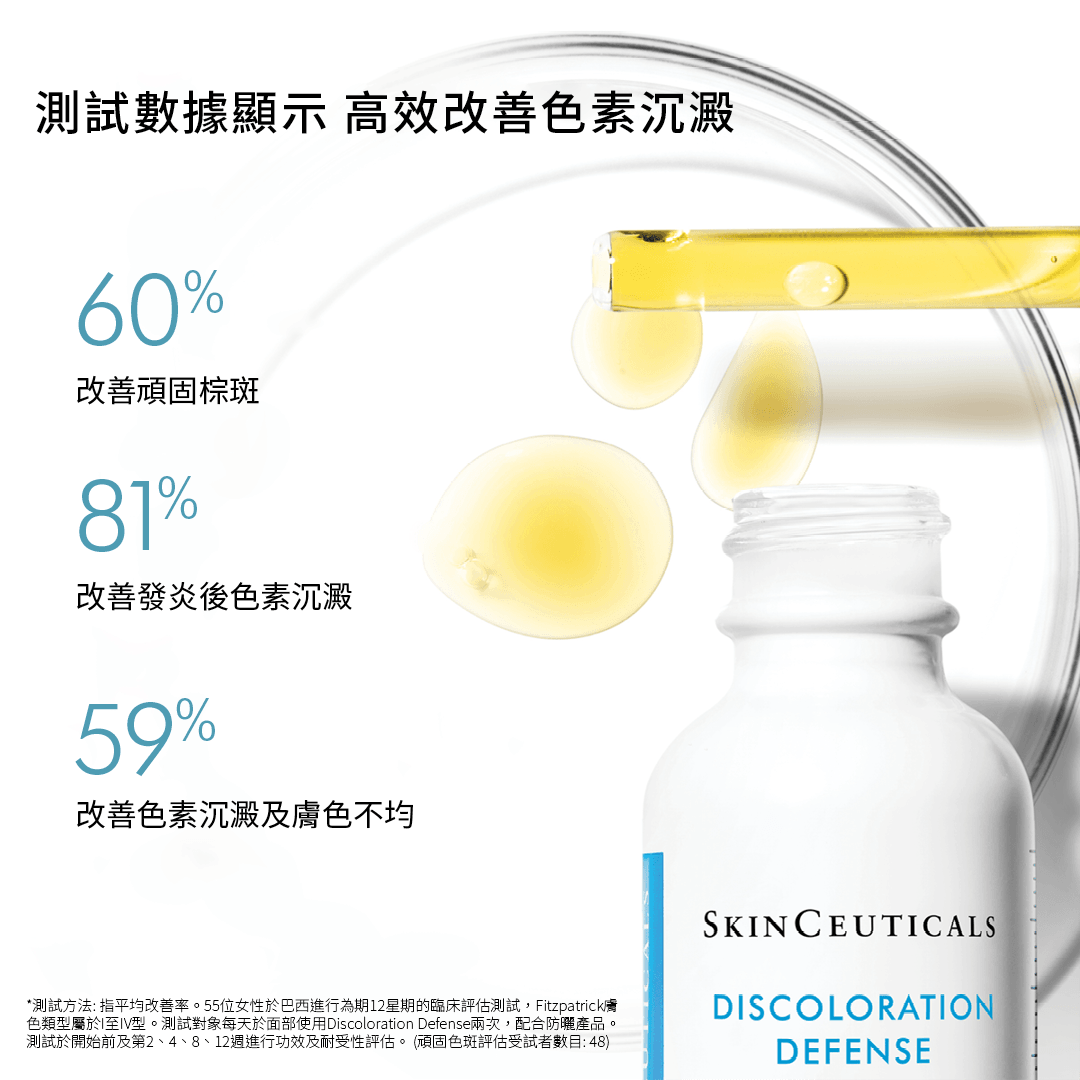 先進的複合配方蘊含3% 傳明酸、1% 麴酸、5% 維他命B3及5% 磺酸,能夠抑制炎症因子活性及酪胺酸酶,促進細胞更新,減少黑色素轉移及產生,最快兩星期*顯著減退色斑、提亮肌膚及均勻膚色。