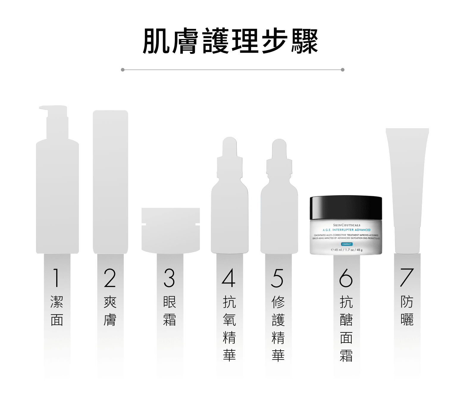醣化是造成皮膚明顯老化的其中一個主要原因,當過多葡萄糖分子黏附在膠原蛋白及彈性纖維上,會促使醣化終產物 (A.G.E.s)產生並引致深層皺紋出現。